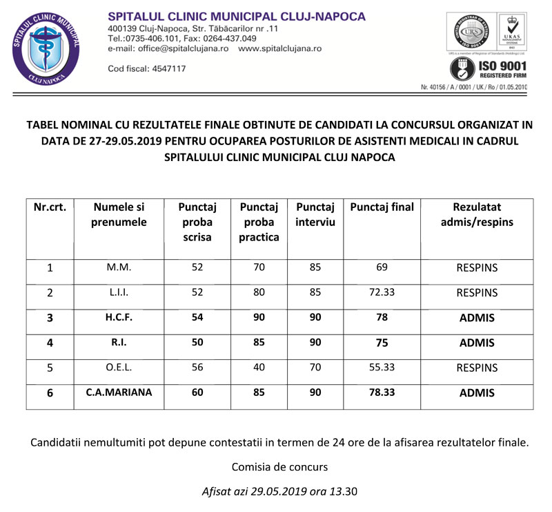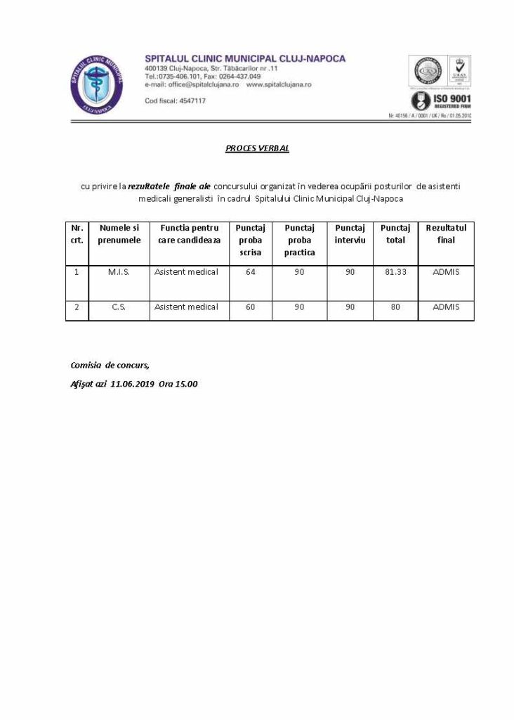 Modificare calendar concurs Psiholog stagiar