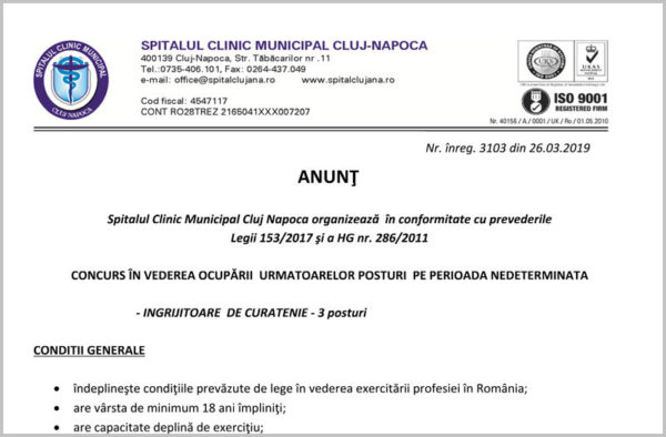 CONCURSUL PENTRU OCUPAREA POSTURILOR DE ASISTENTI MEDICALI VA AVEA LOC IN