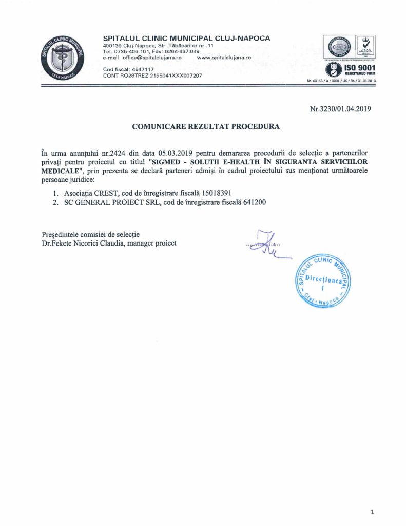 DATA DE 03.04.2019 ORA 10.00 IN AMFITEATRUL SPITALULUI CLINIC MUNICIPAL