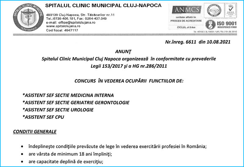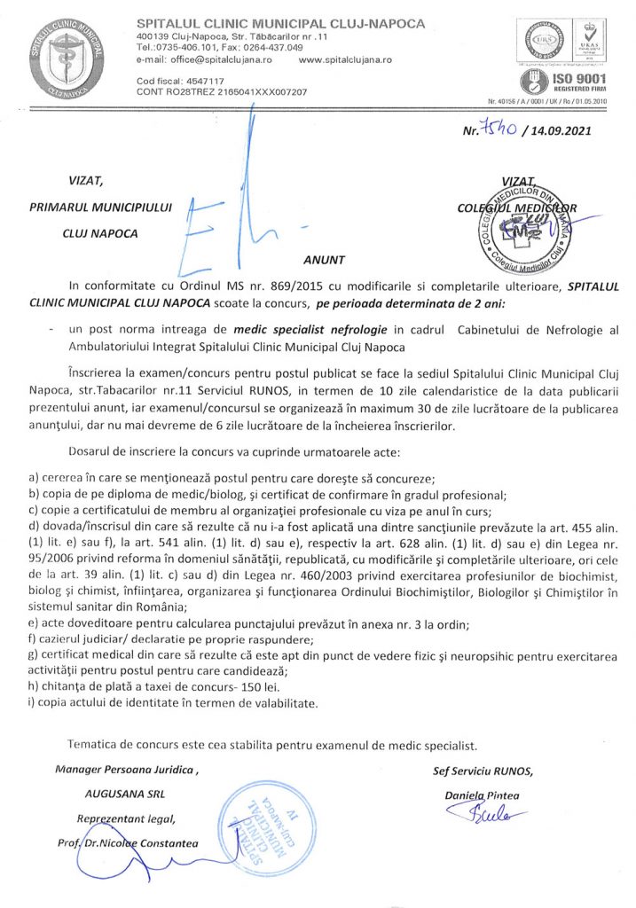 Anunt concurs medic specialist nefrologie