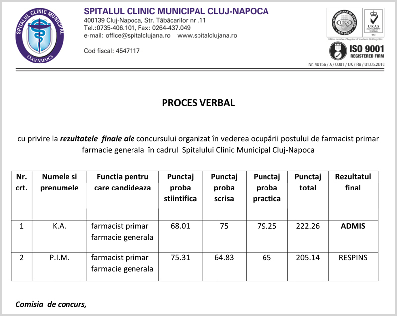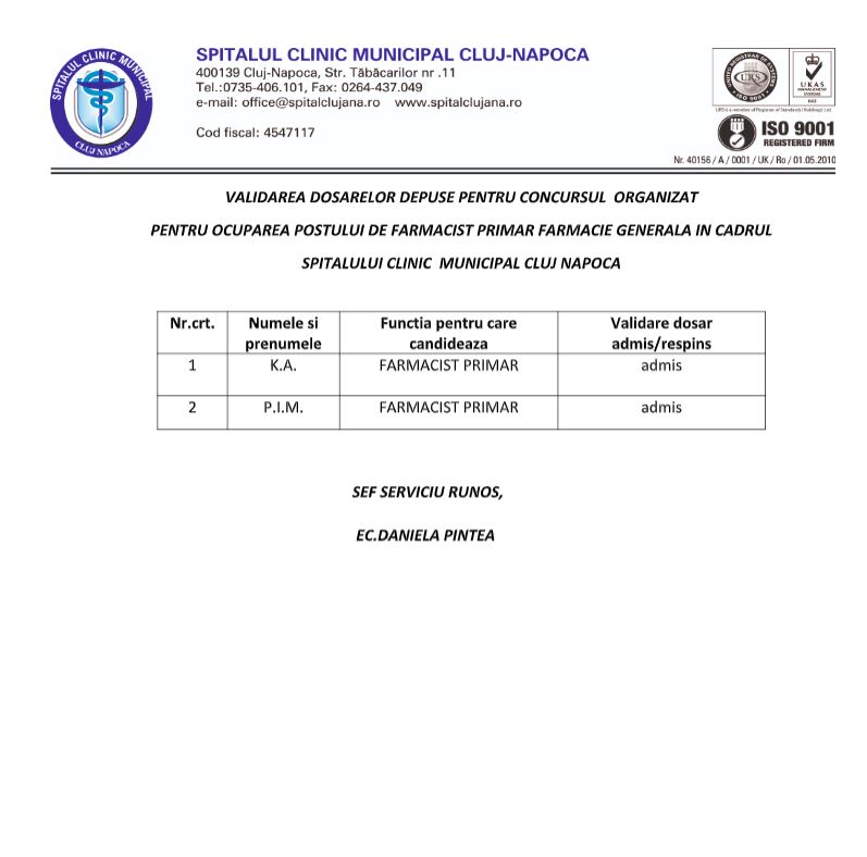 Cererile precum și alte informații se obțin de la Serviciul RUNOS al Spitalului Clinic Municipal Cluj-Napoca, tel. 0735 406105.