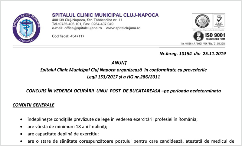 Dosarele de înscriere se vor depune la biroul Resurse Umane în perioada 06.01.2020 – 14.01.2020, în intervalul orar 10.00 – 14.00.